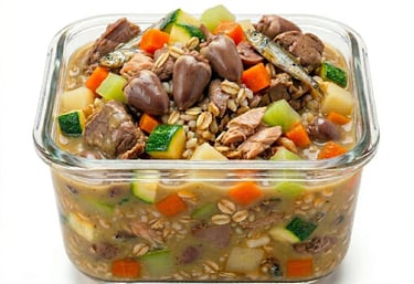 ✓ Hecho en casa ✓ Congelado ✓ Sin conservadores ✓ Proteína real sin harinas ✓ Aminoácidos esenciales: Taurina, Arginina, Histidina y más.