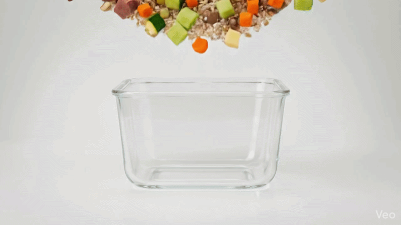 1 Sirve el concentrado en el tazón • 2 Agrega agua fresca en casa • 3 Listo: 70-80% de hidratación real en cada bocado